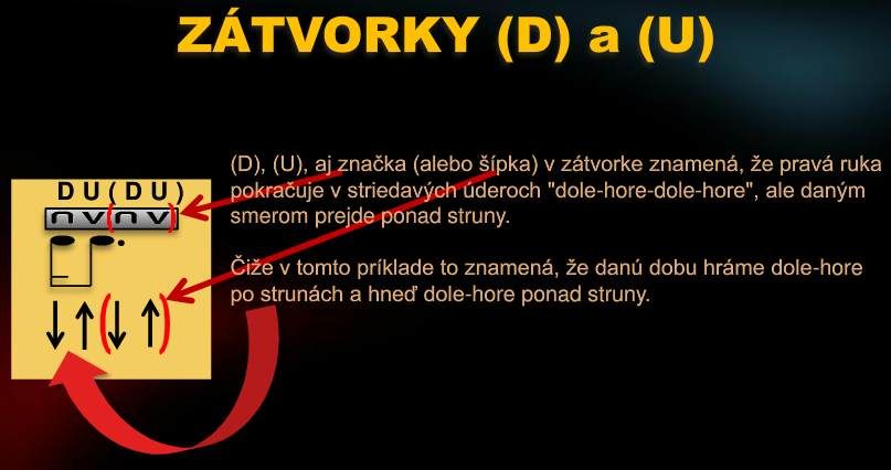 POZOR: Rôzne akordy sa hrávajú na rôznych strunách: